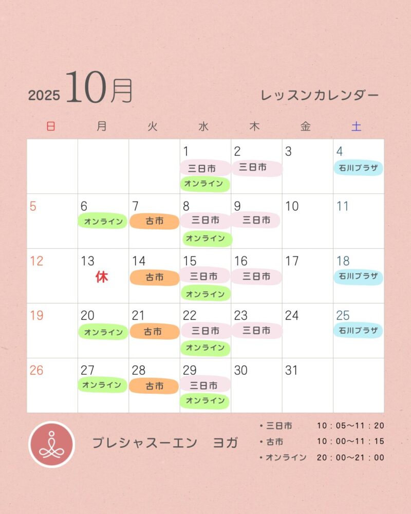 2025年10月レッスンカレンダー